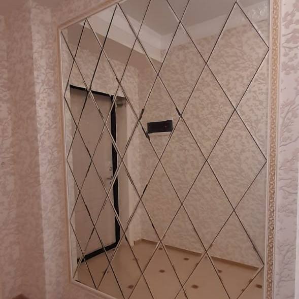 Использована серебристая квадратная зеркальная плитка 18х18.